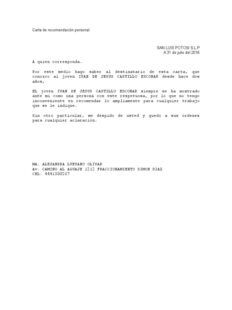 Carta De Recomendacion De Migracion : carta de recomendacion personal de un vecino - Wood Scribd ... - Conoce como hacer / escribir una carta de recomendación laboral en word con ejemplos y un machote.